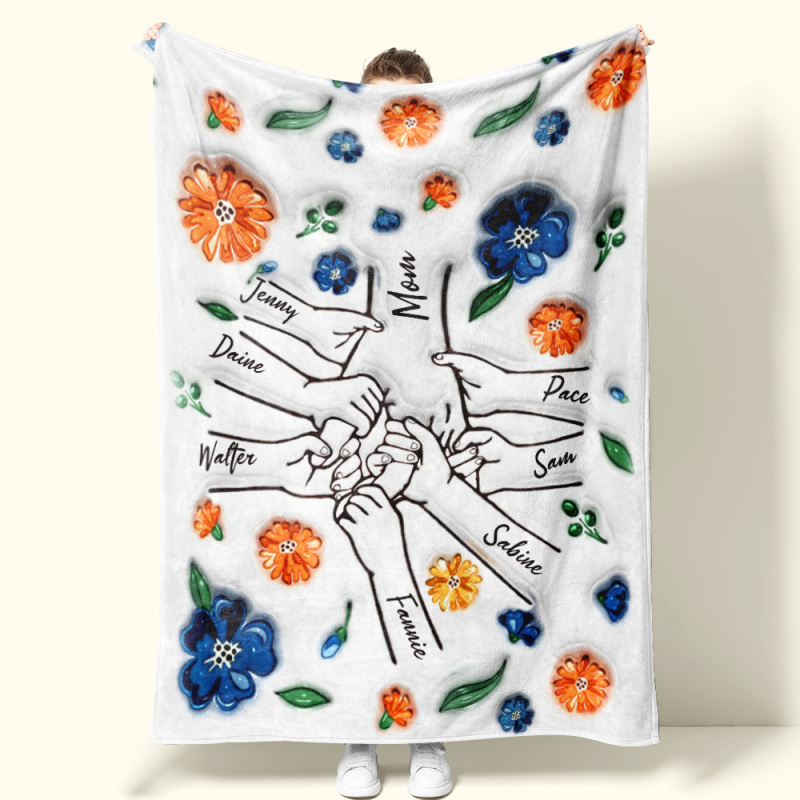 Family Personalized Custom 3D Inflated Effect Printed Blanket - Mother's Day Gift For Mum/Mom, Grandma