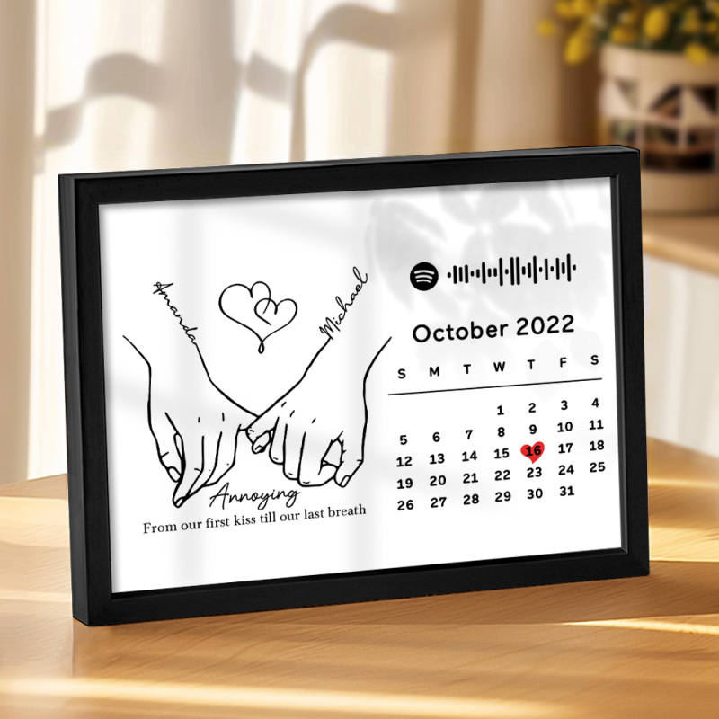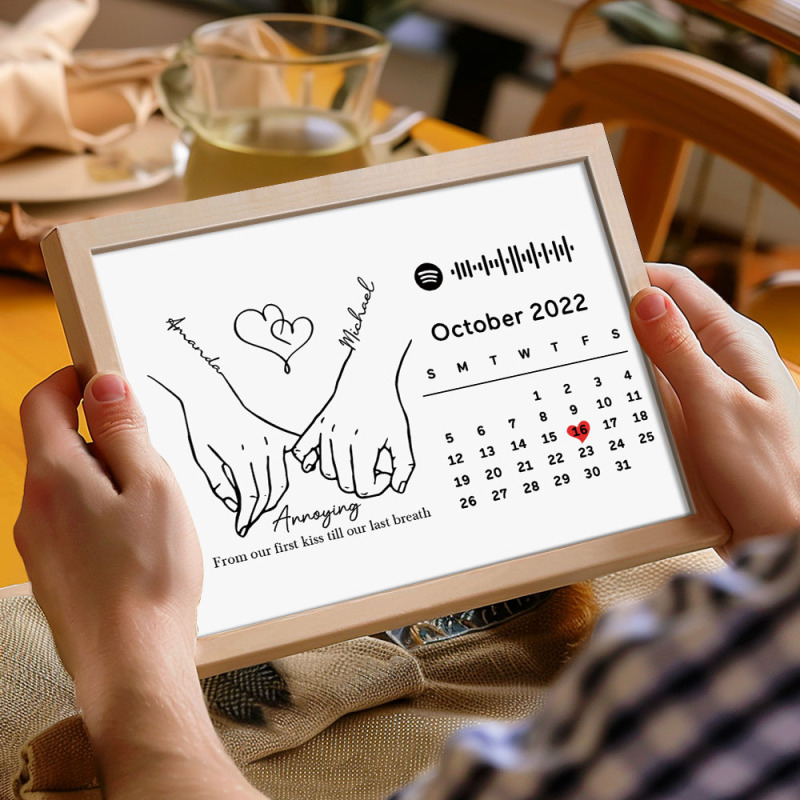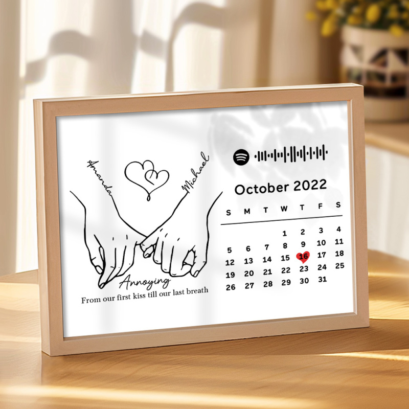 Custom Photo Forever Love Calendar and Names with Spotify code Wooden Frame Gifts for Her Love Couple