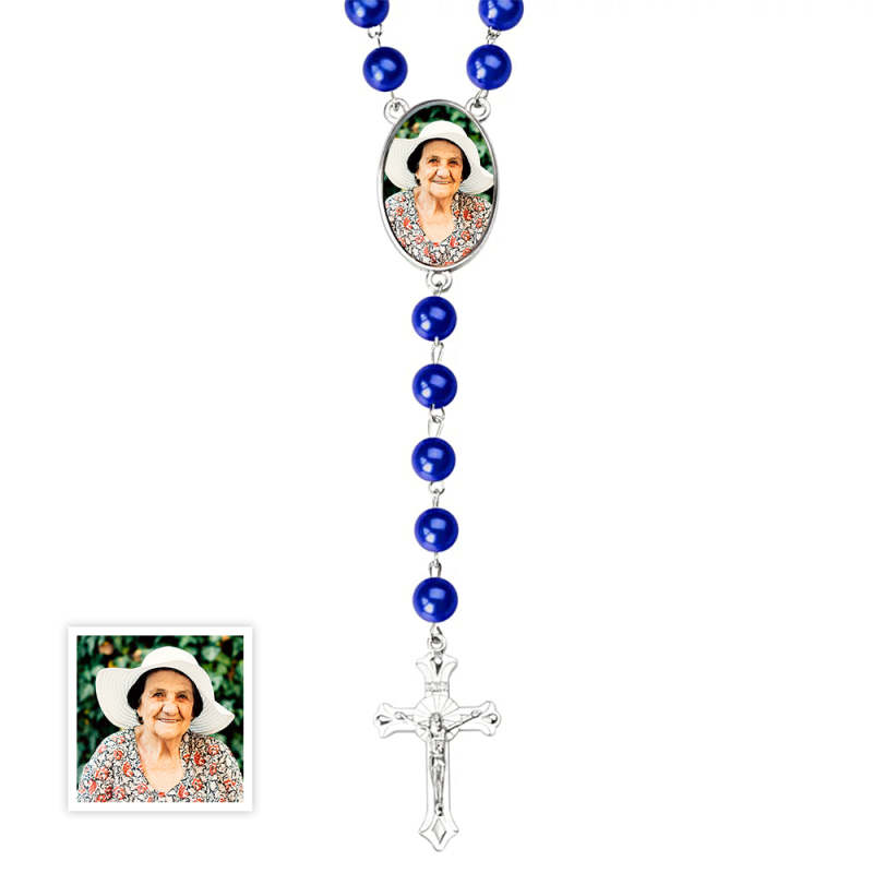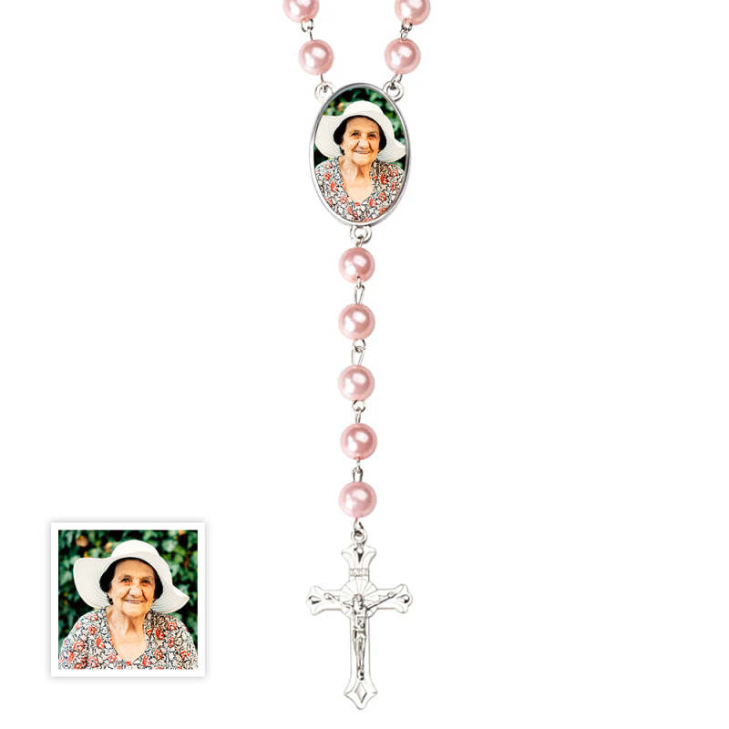 Custom Rosary Beads Cross Multi-Color Necklace Personalized Necklace with Photo Memorial Gift for Women
