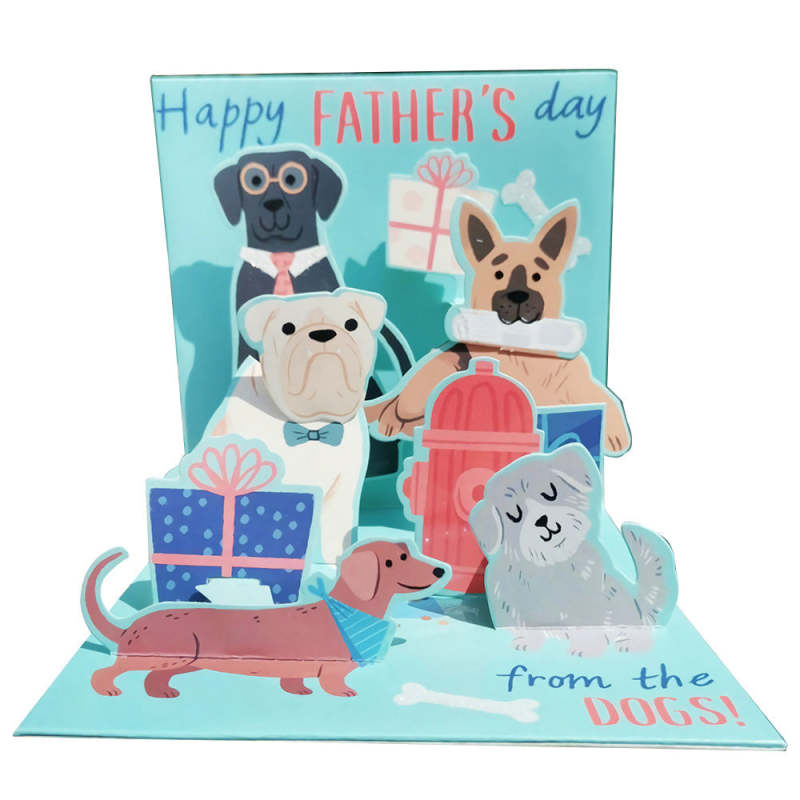 Startseite / Carte de fête des pères Chiens Carte de vœux pop-up 3D pour lui