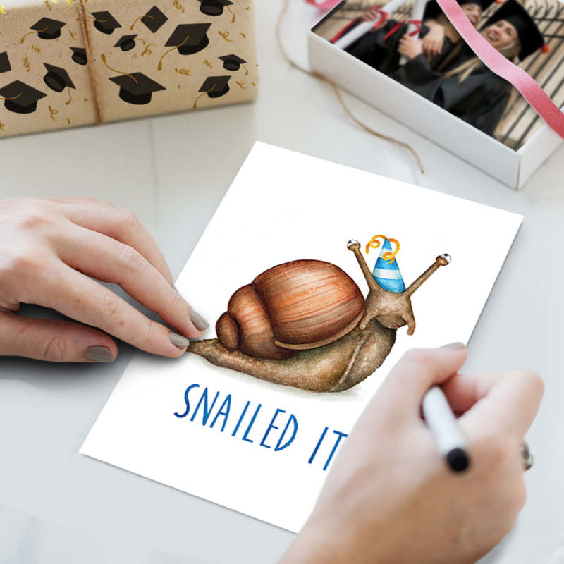Startseite / Funny Congratulations Pun Card Snailed It Card Humorous Graduation Card