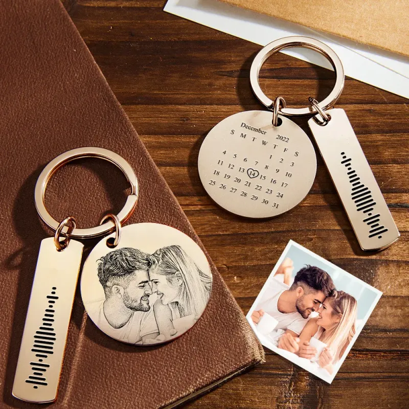 Personalized Calendar Keychain Special Day Significant Photo Heart Square Circle Shape Music Code Metal Keychain Anniversary Gift
