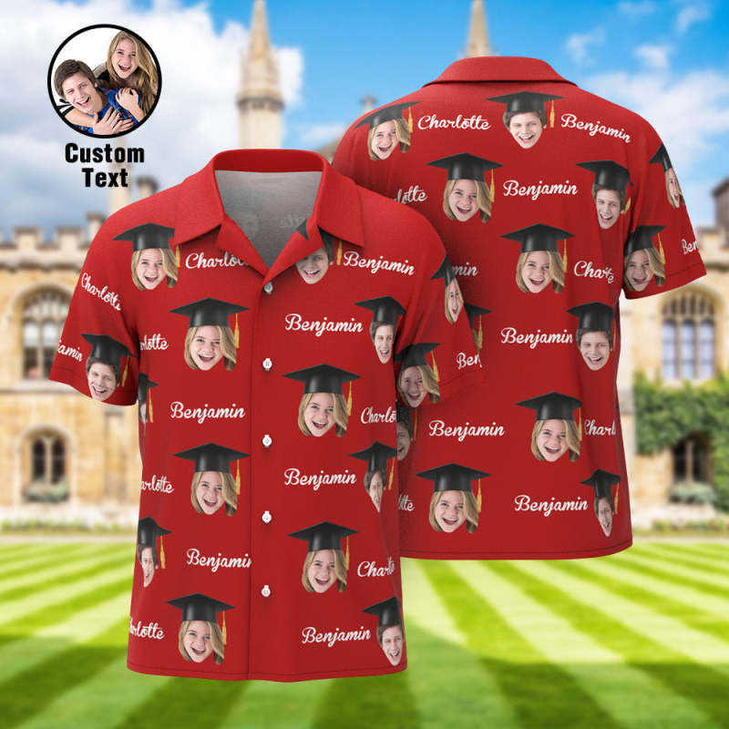 Custom Men Hawaiian Shirt Personalized Face and Name Aloha Shirts for Graduation Party