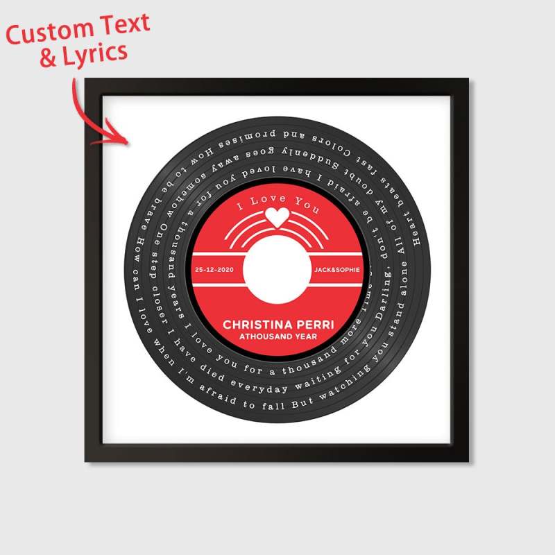 Custom Vinyl Record Song Lyrics Frame Wall Art Anniversary Wedding Gift for Him