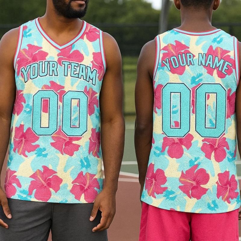 Custom 3D Pattern Tropical V Shape Hawaii Leaves Basketball Jersey With Name & Number