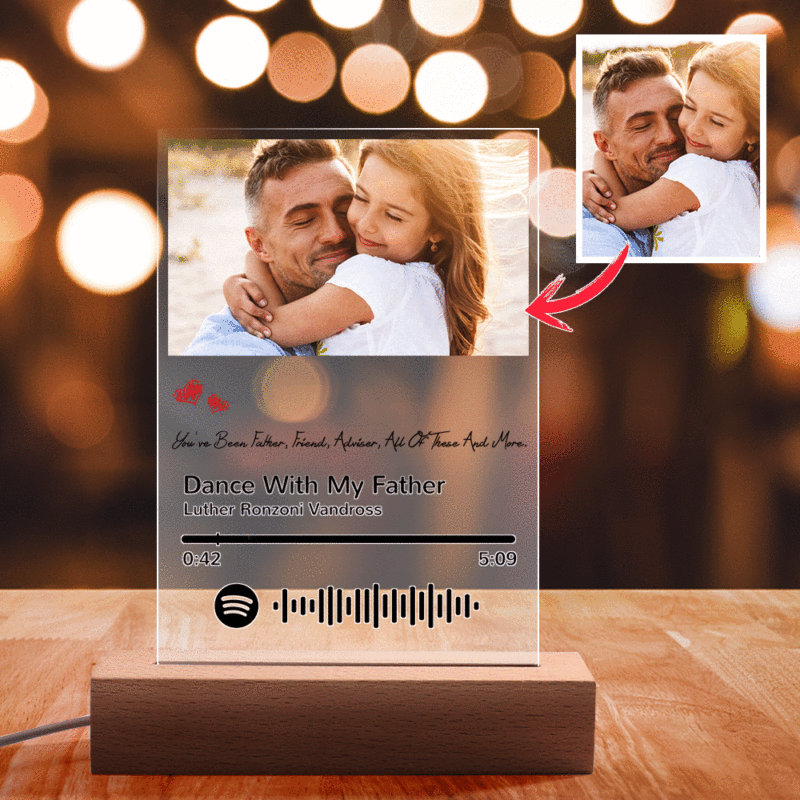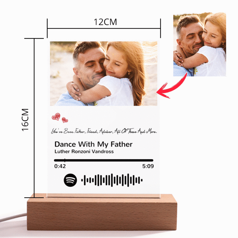 Scannable Spotify Code Veilleuse Photo Gravé Acrylique Cadeaux Fête Des Pères