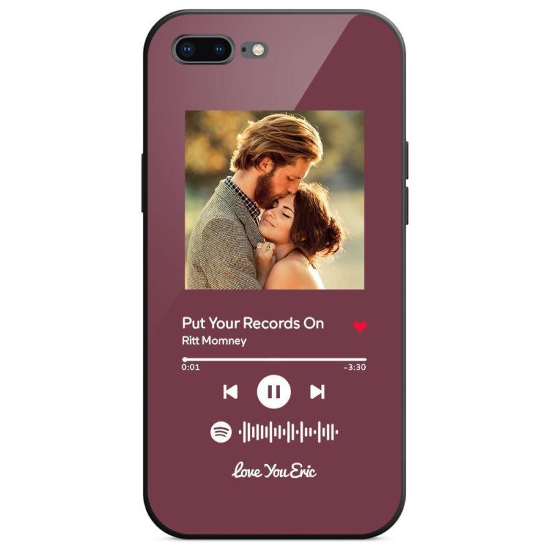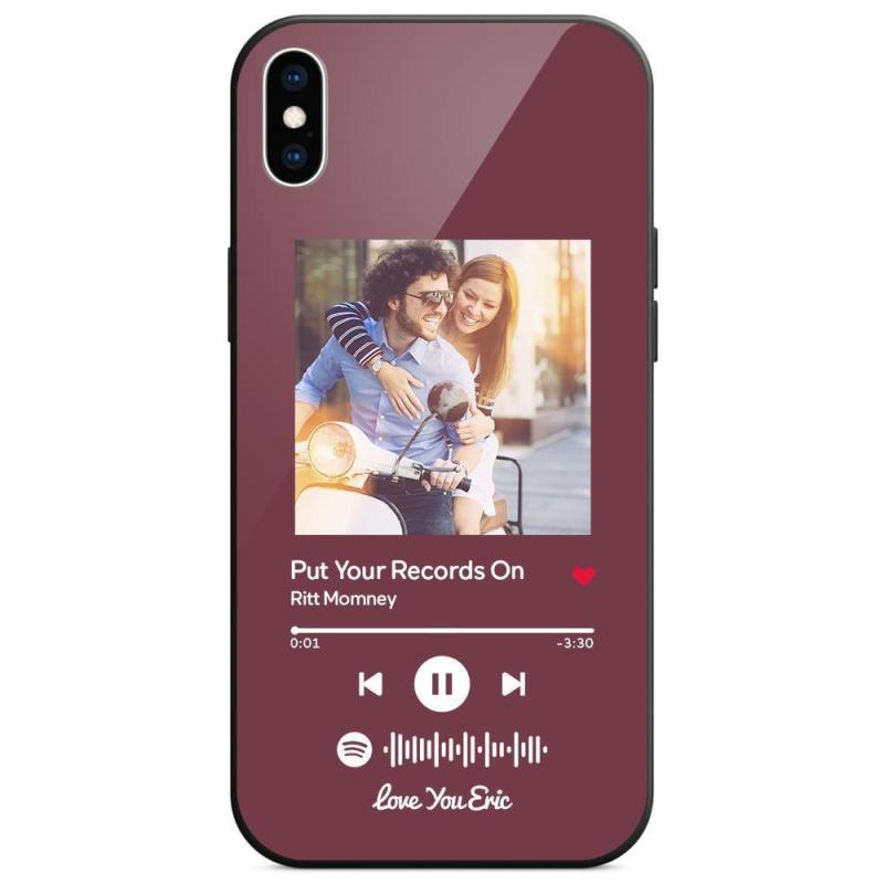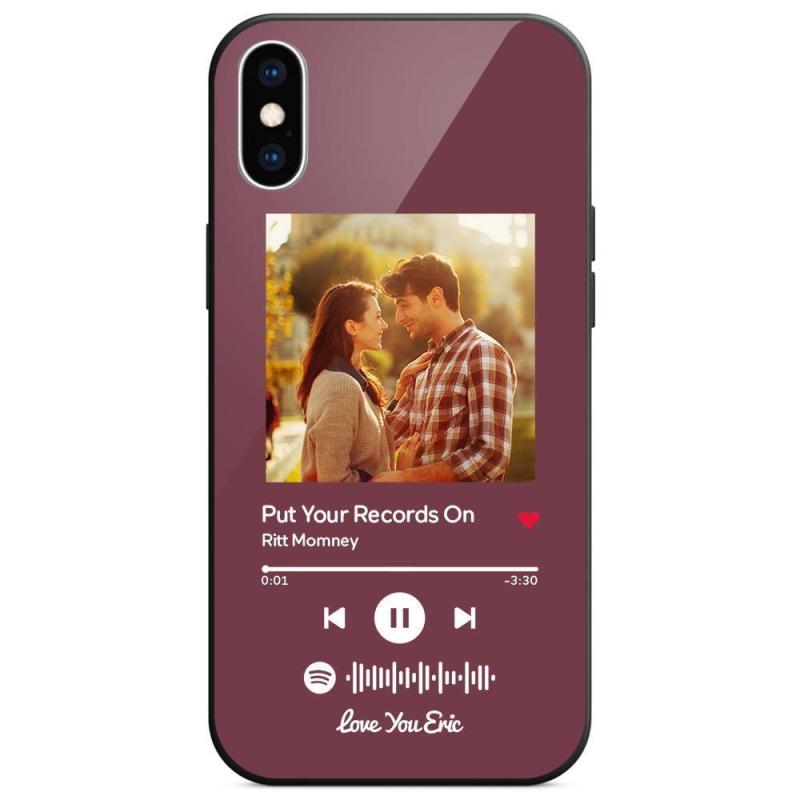 Custodia Per Iphone Personalizzata Spotify Code Music Con Vetro Temperato Con Testo Scansionabile Inciso Con Musica Personalizzata - Viola