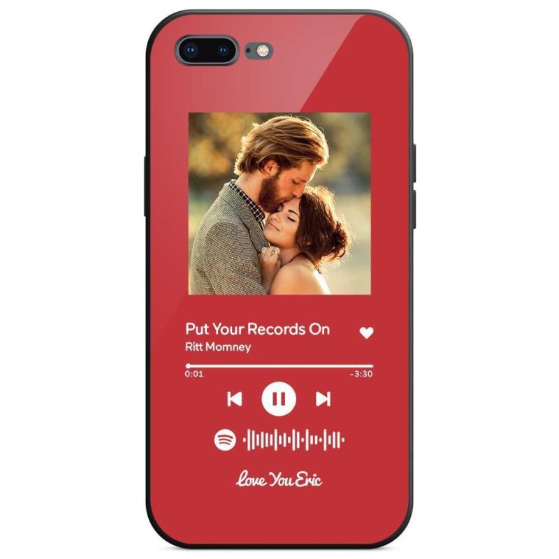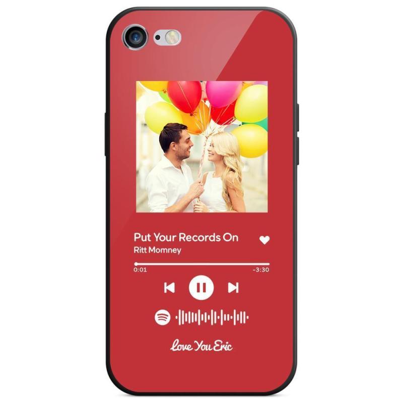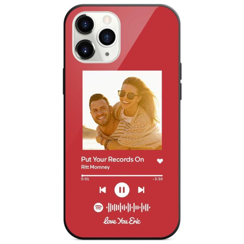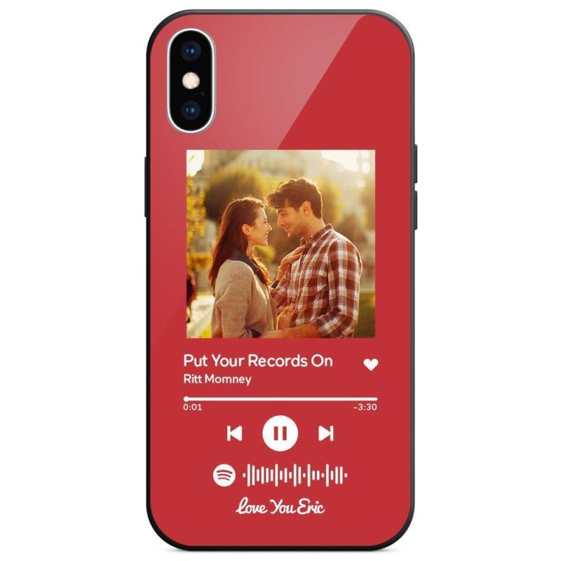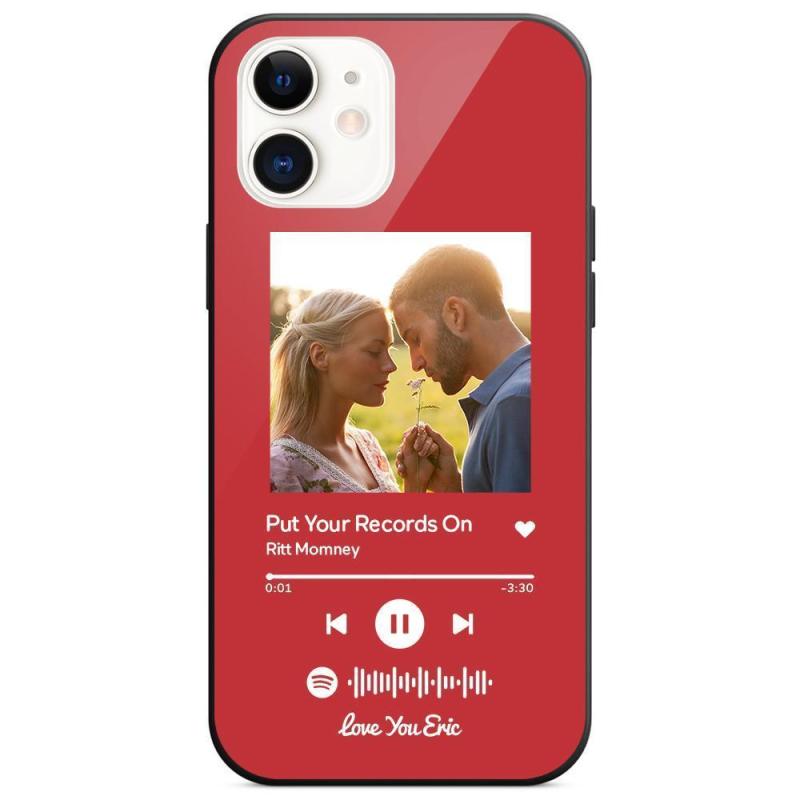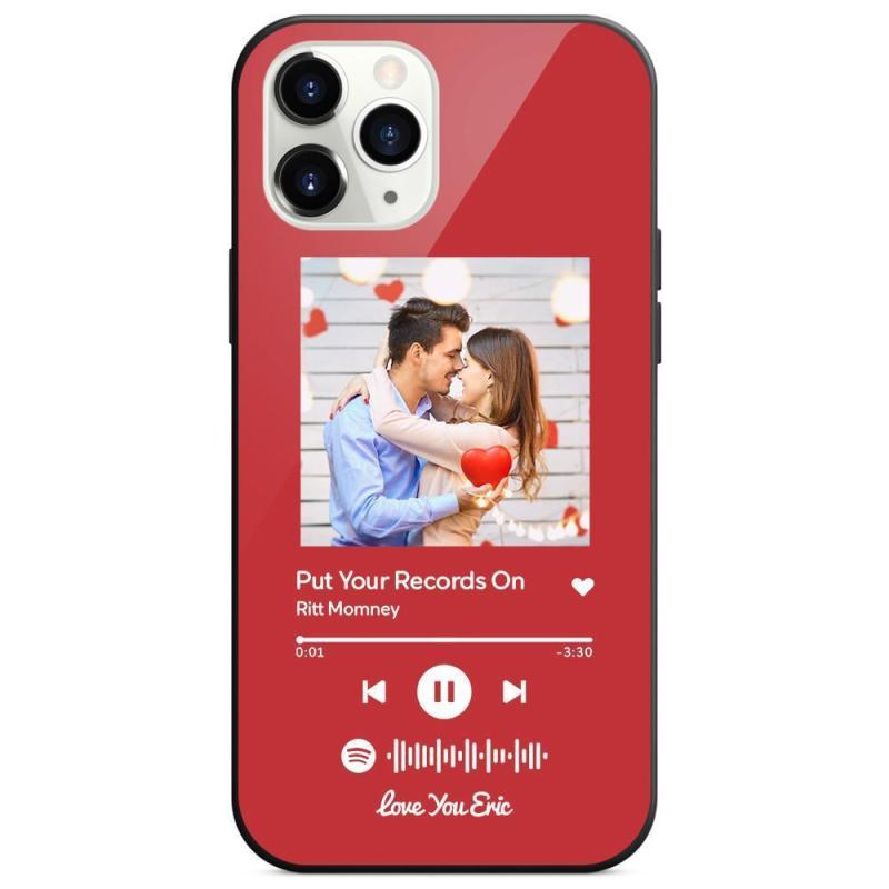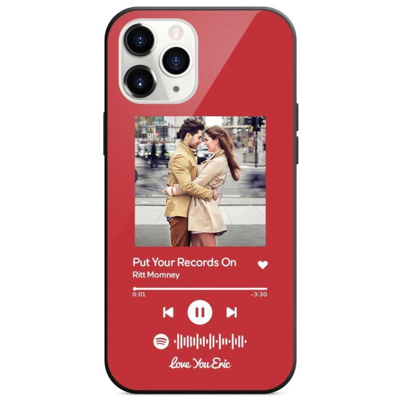 Custodia Per Iphone Personalizzata Spotify Code Music Con Vetro Temperato Con Testo Scansionabile Inciso Con Musica Personalizzata - Rosso