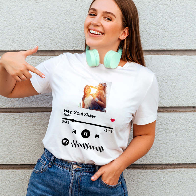 Custom Scannable Spotify Code T-shirt Personalized Album Cover Photo T-shirt White