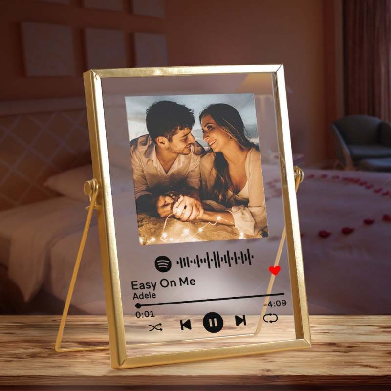 Personalized Spotify Code Music Plaque Valentine's Gifts Spotify Acrylic Scannable Glass Art Spotify Plaque with Golden Frame Luxury Home Decoration For Her