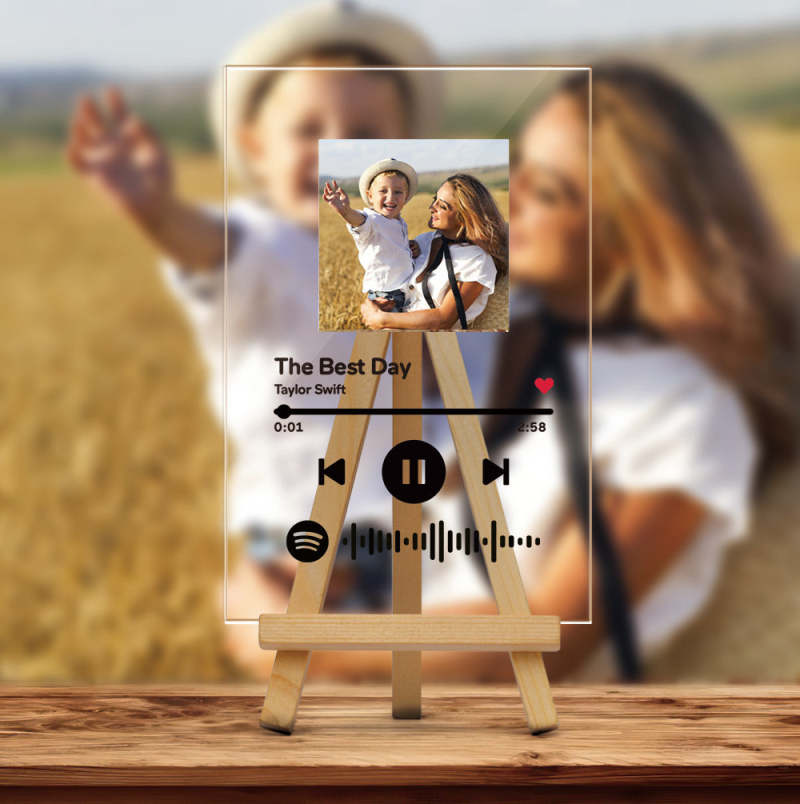 Spotify Acrylic Glass Art Custom Spotify Code Music Plaque With Wooden Stand Best Photo Gift For Mum