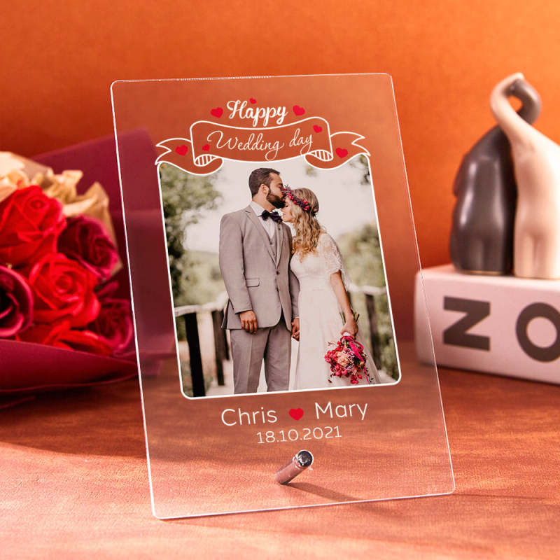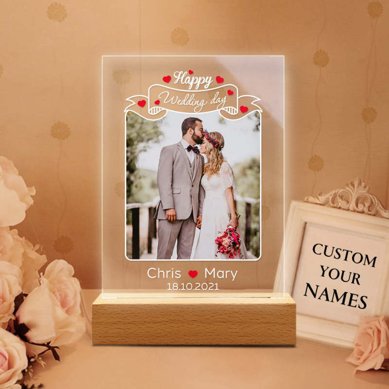 Wedding Day Gift for Her Acrylic Lamp With Photo Custom Photo Night Light Engagement Gift Couple