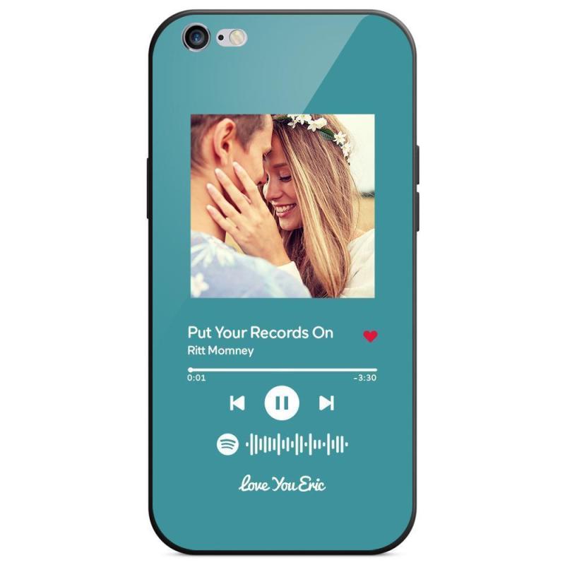 Custodia Per Iphone Personalizzata Spotify Code Music Con Vetro Temperato Con Testo Scansionabile Inciso Con Musica Personalizzata - Azzurro