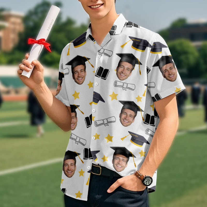Minimalist Graduation Face Shirt Custom Photo Aloha Shirt Available in Multiple Colors