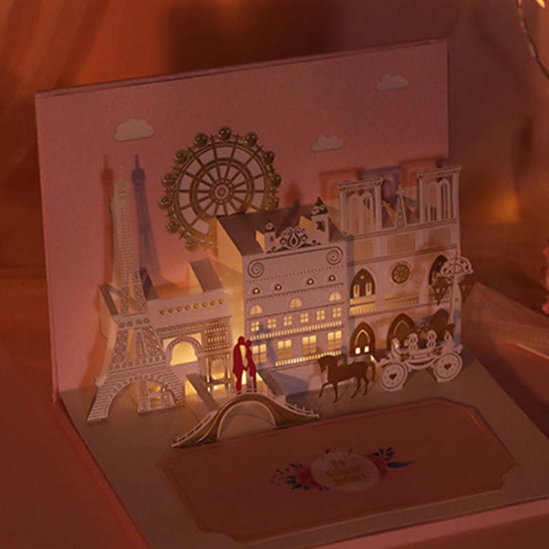 Recordable Romantic Love 3D Pop UP Greeting Card Led Light Pop Up Card