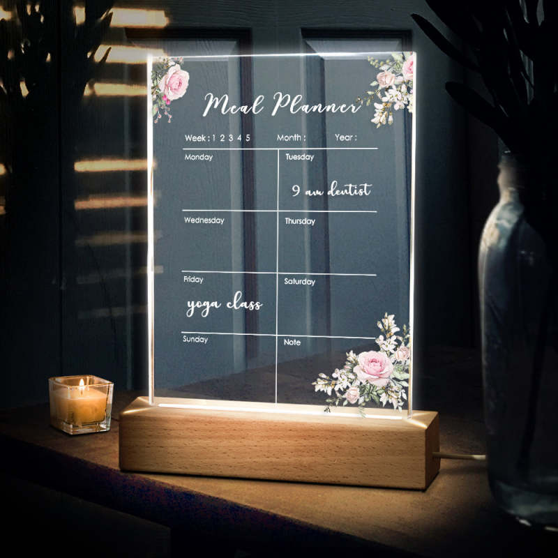 Acrylic Night Light Message Note Board Meal Planner Note Board DIY Erasable with Free Marker Pen