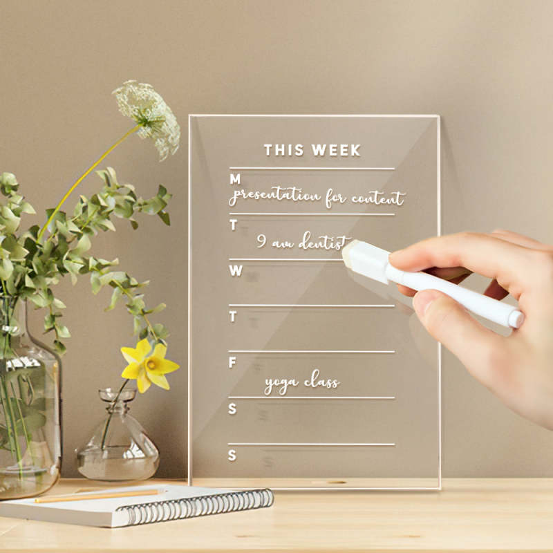 首页 / Acrylic Note Board Acrylic Plaque Weekly Plan Erasable DIY Note Board with Marker