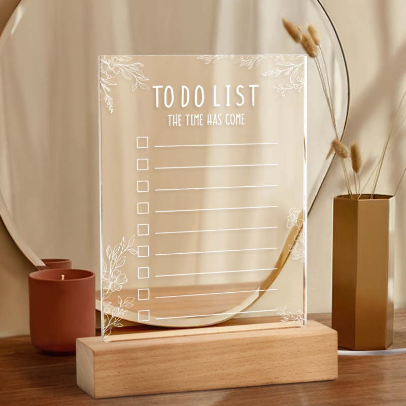 Acrylic To Do List Note Board with Marker Erasable Home Night Light Decor for Bedside