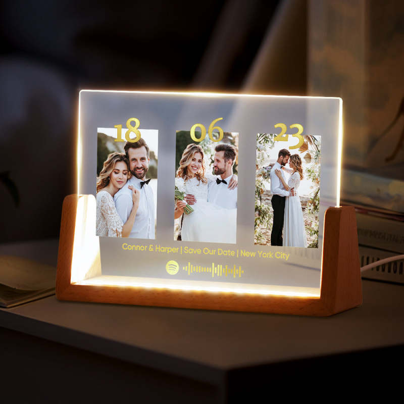 Anniversary Gift Personalized Photo Plaque Custom Night Light Spotify Plaque Lamp with Spotify Code