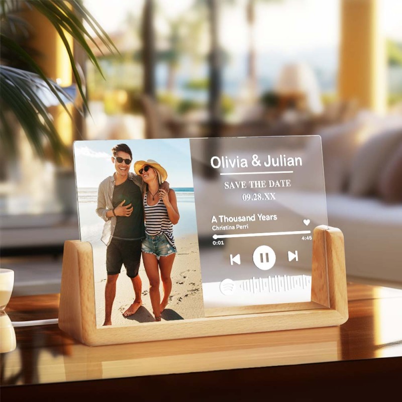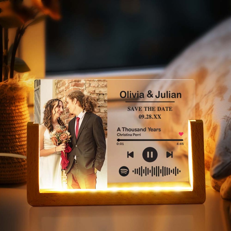 Anniversary Gifts Save the Date Personalized Photo Acrylic Song Plaque Custom Night Light Lamp With Spotify Code Gift for Lover