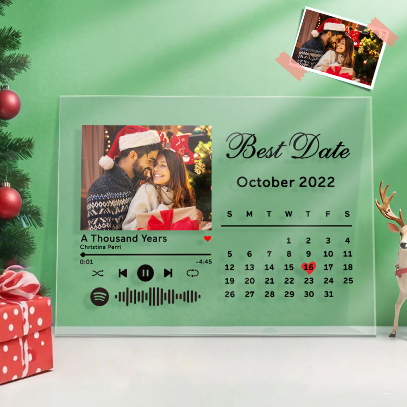 Christmas Gifts Custom Best Date Photo Calendar Plaque Acrylic Spotify Song Decor Anniversary Gift For Couples