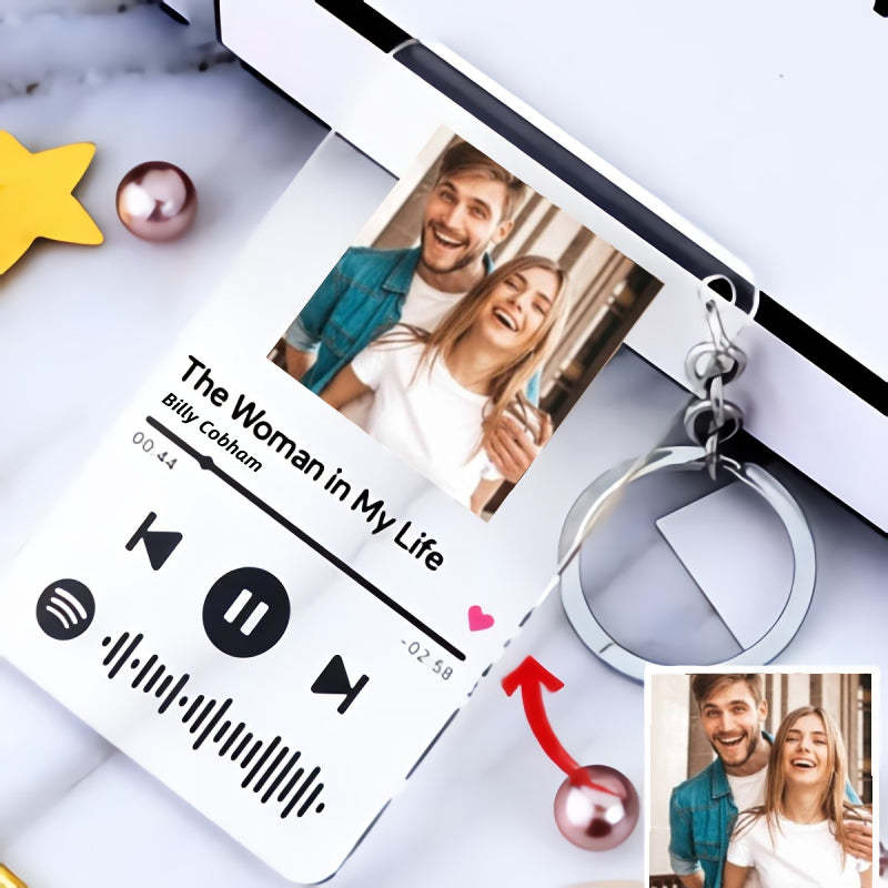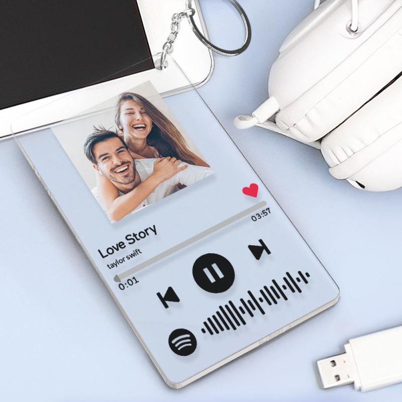 Custom Photo Scannable Spotify Code Keychain Music Plaques Acrylic Keyring - 2.1IN X 3.4IN