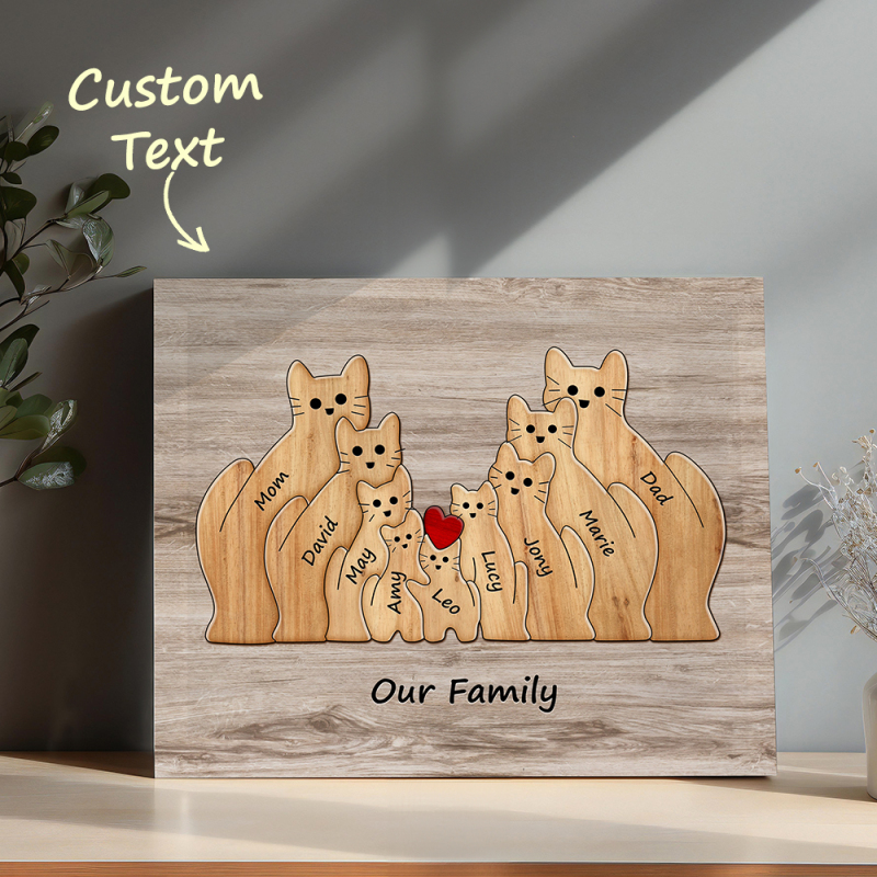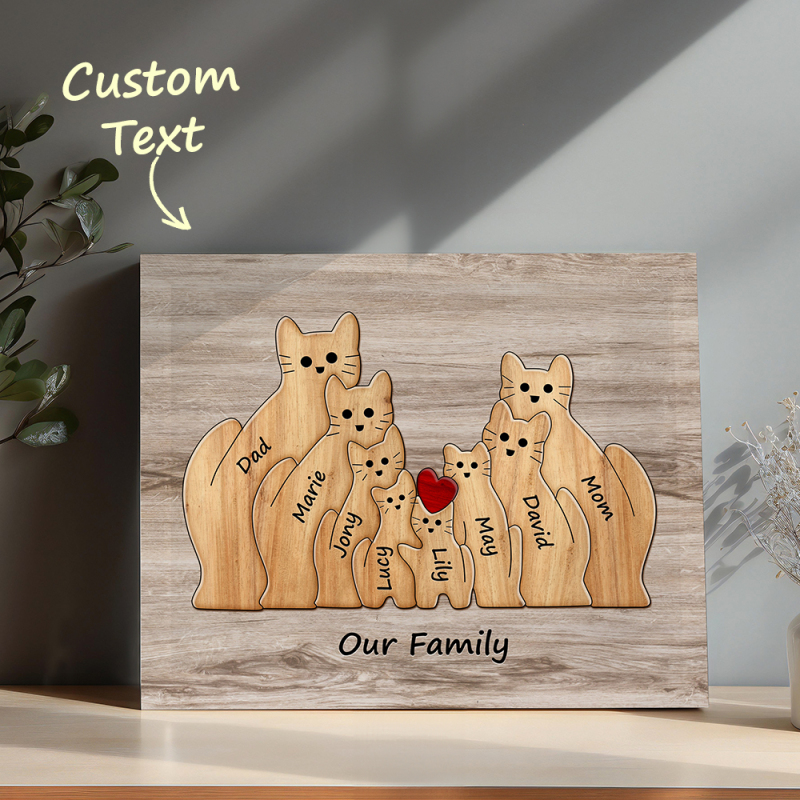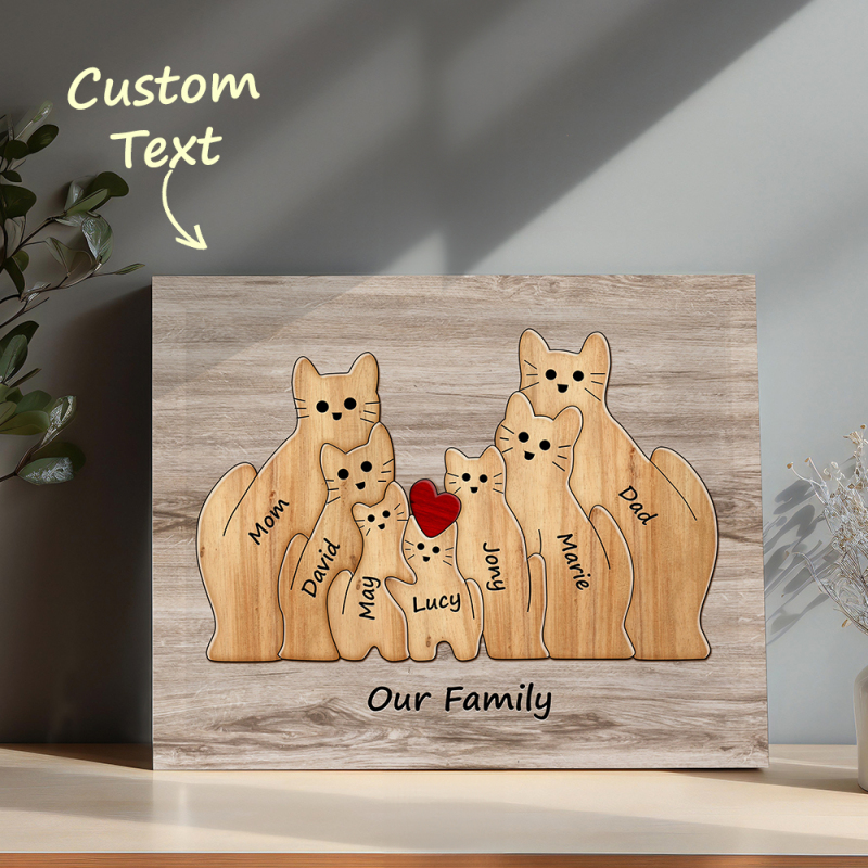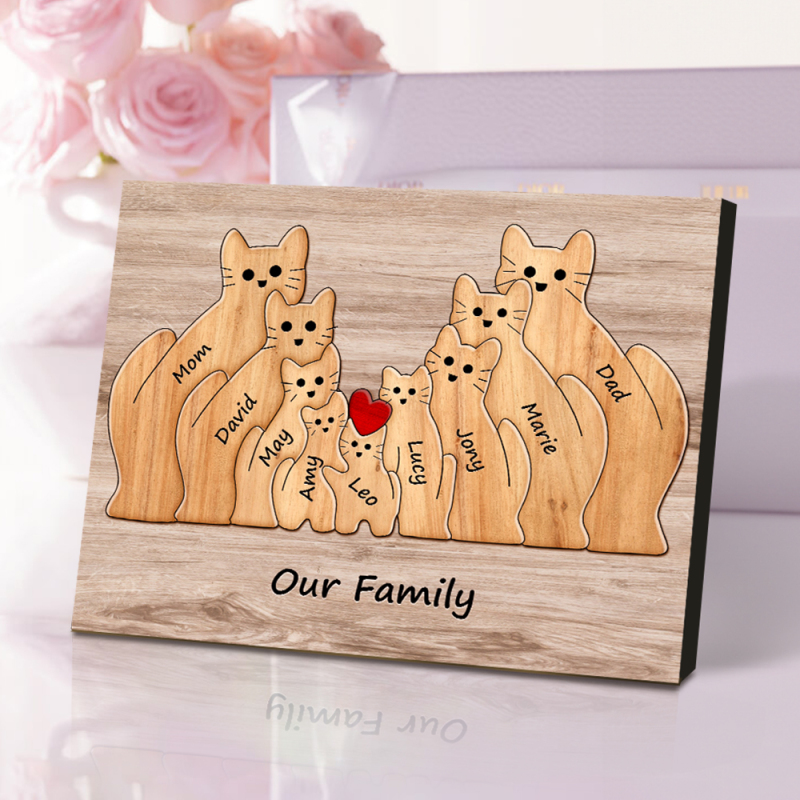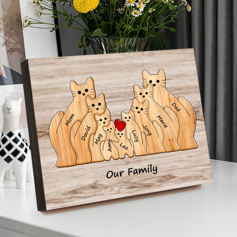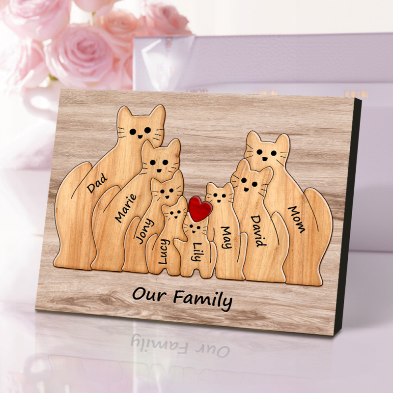 Custom Animal Puzzle Family Cat Personalized Print Gift for Mom, Grandma