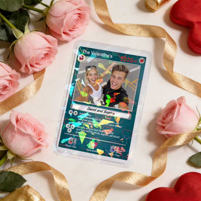 Personalized Valentine`s Day Power Couple Card, Custom Anniversary Card Couple Photo Anime Style, Best Valentine's Day Gift for Lover