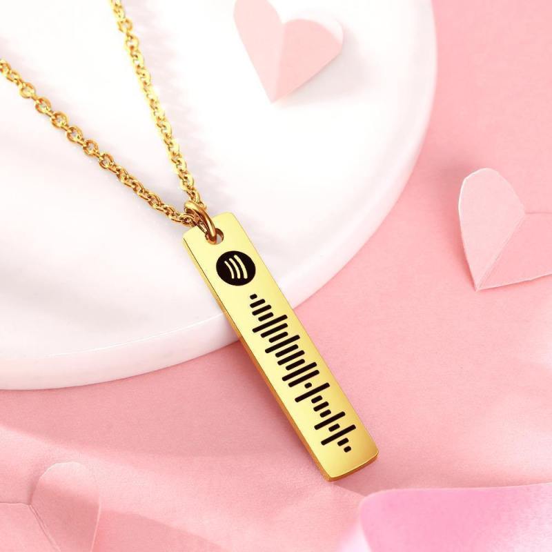 Custom Bar Necklace Spotify Code Necklace Spotify Scan Code Stainless Steel Necklace 14K Gold