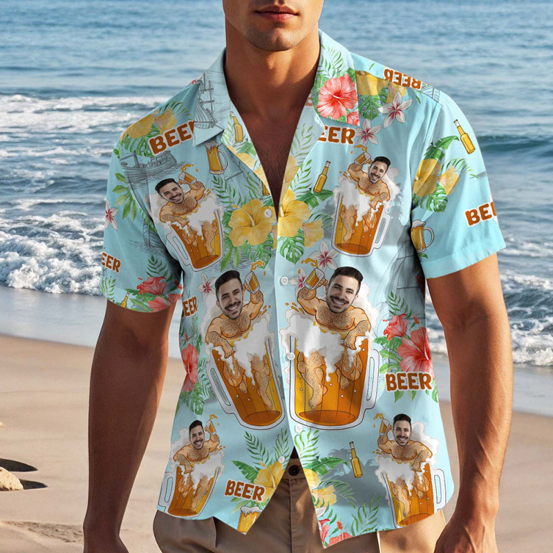 Custom Face Hawaiian Shirt Beer Print Personalized Aloha Beach Shirt Party Gift for Men