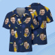 Custom Face Hawaiian Shirt Navy Blue with Beer Design Funny Vacation Style Men Shirt