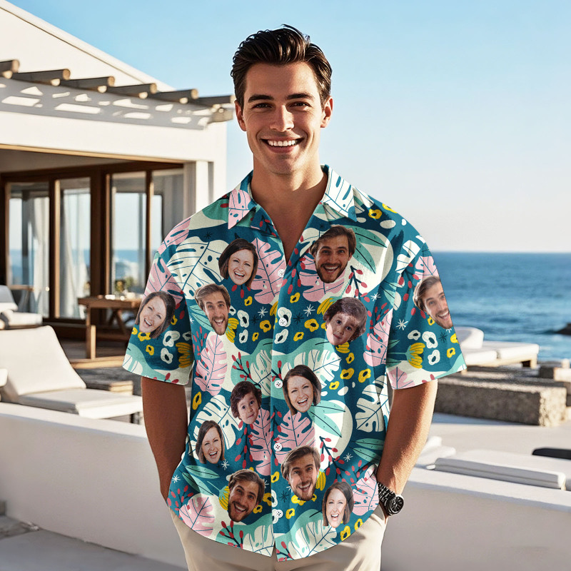 Custom Face Pink Flower Hawaiian Shirt Personalized Pink Flamingo Pattern Hawaiian Shirt Gift For Him