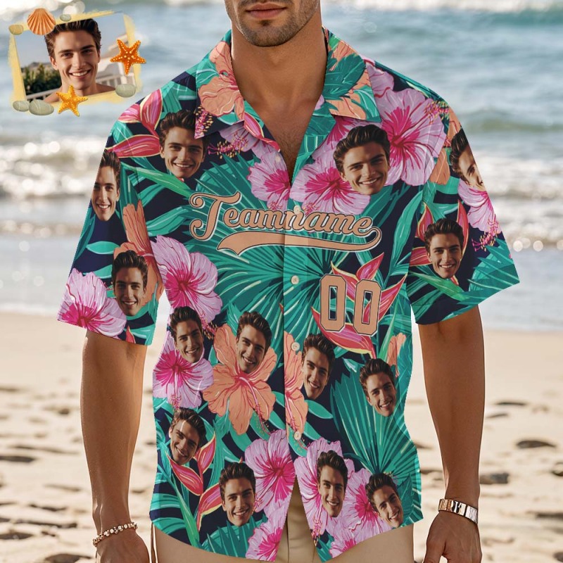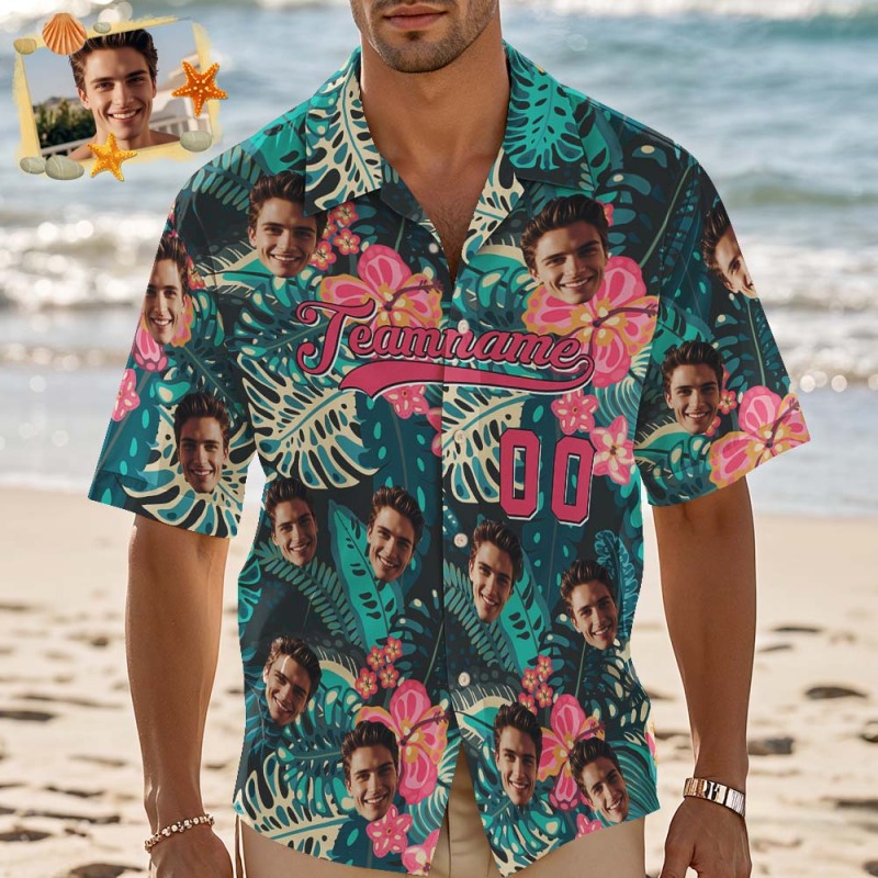 首页 / Custom Hawaiian Shirt Tropical Beach Theme Custom Beach Shirt with Name & Number