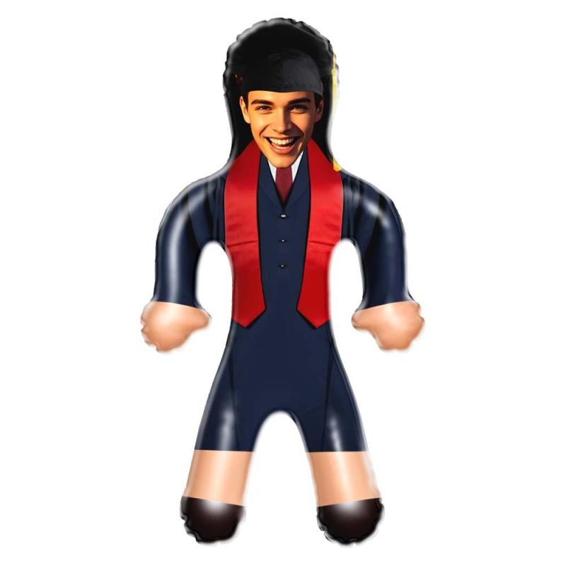 Face Blow Up Doll Blue and Gold Graduation Air Minime Custom Inflatable Face Doll -