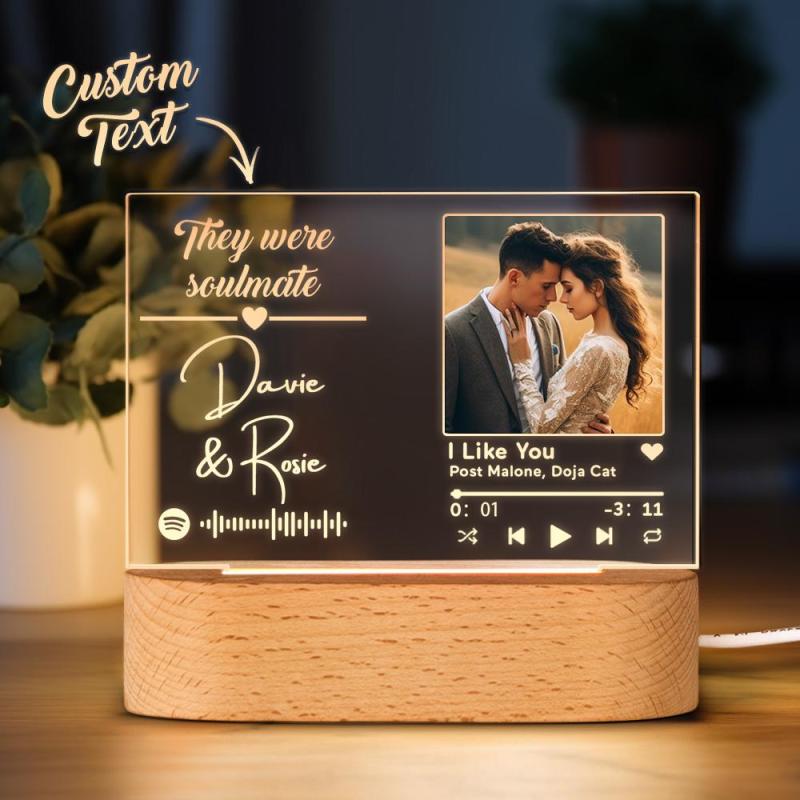 Custom Name Acrylic Night Light Spotify Code Night Light Personalized Text and Photo Night Light Gift For Her