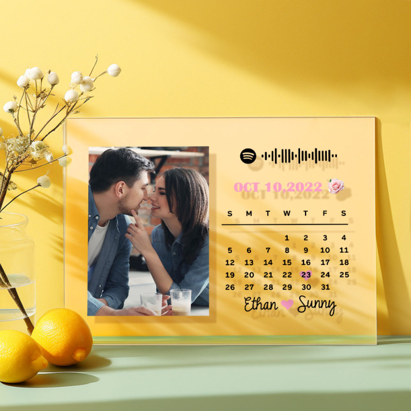 Custom Photo Calendar Plaque Acrylic Spotify Song Decor Anniversary Gift For Couples