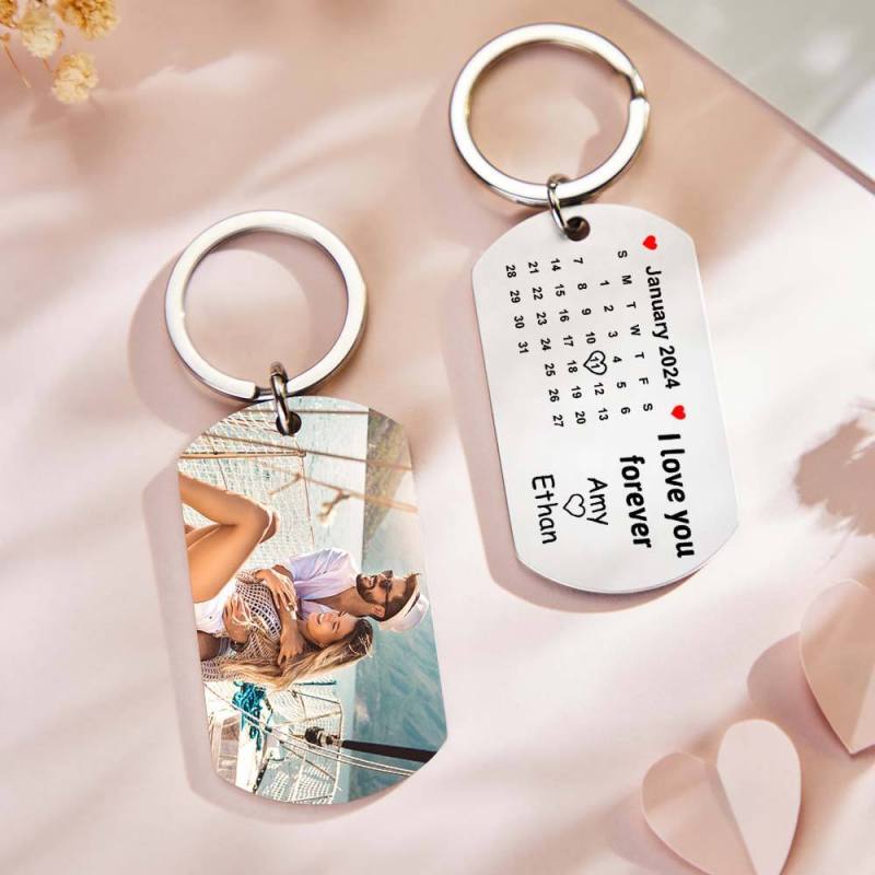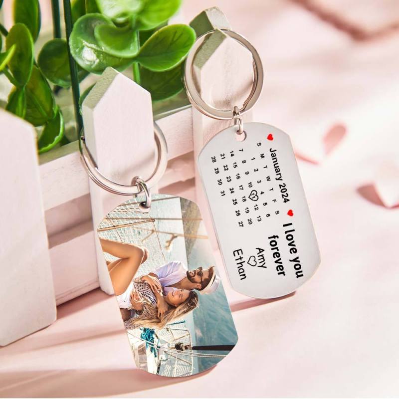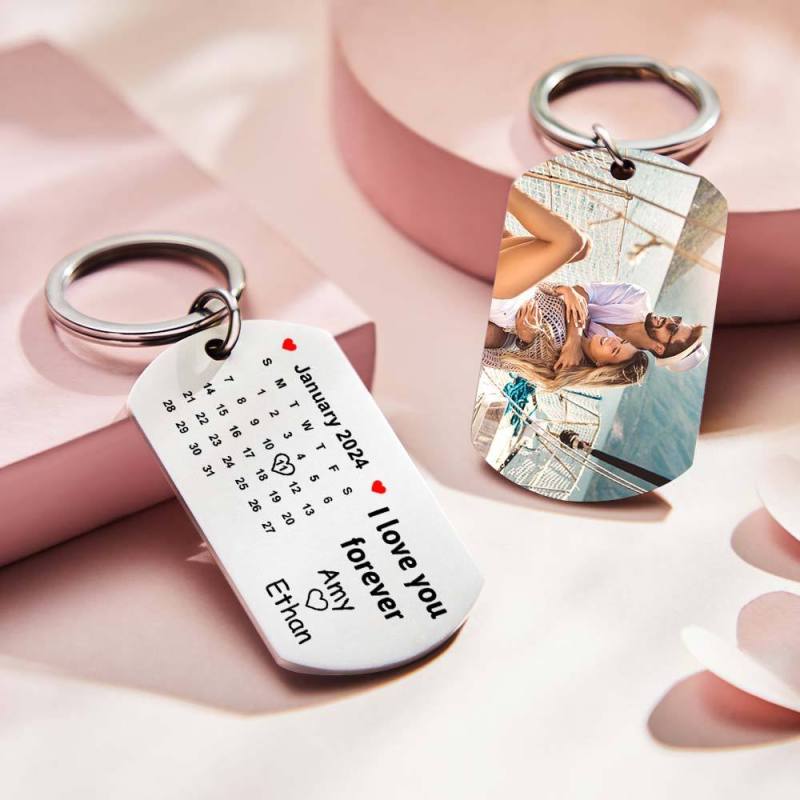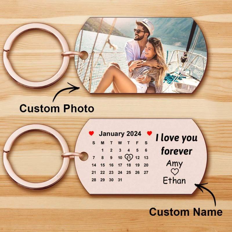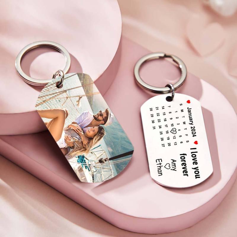Custom Photo Forever Love Calendar Keychain Personalized Stainless Steel Keychain Gift for Lover