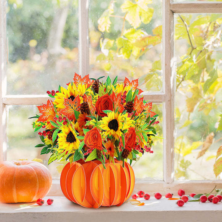 Fall Flower Paper Bouquet Pop up Card for Thanksgiving