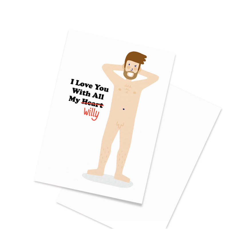 Funny Valentine's Day Greeting Card I Love You With All My Willy Rude Card