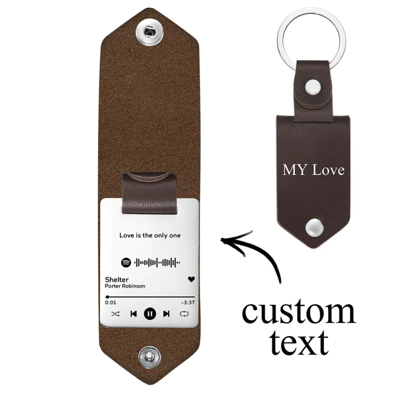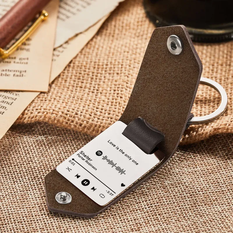 Gift For Dad Scannable Spotify Code Keychain Custom Engraved Music Song Keychains Leather Gifts for Couple