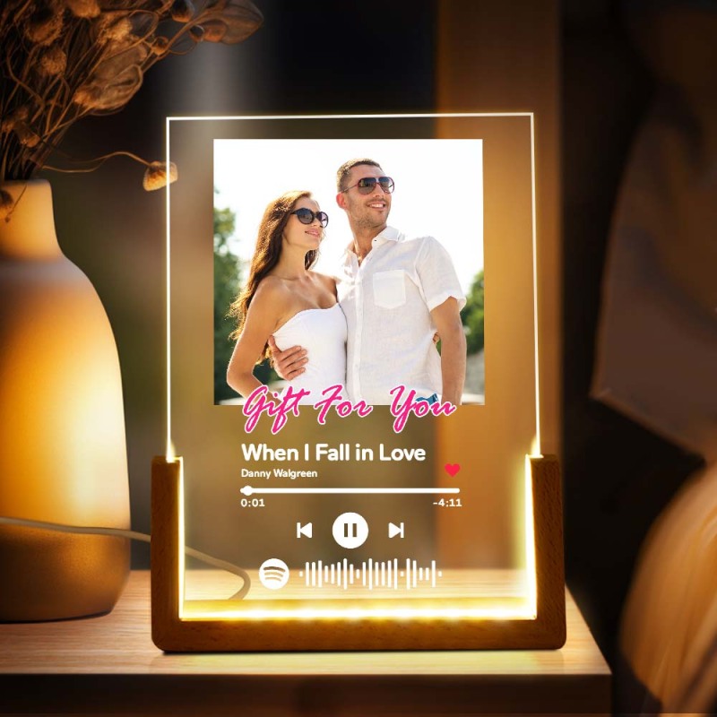 Gift for You Personalized Photo Acrylic Song Plaque Custom Spotify Plaque Night Light Lamp With Spotify Code