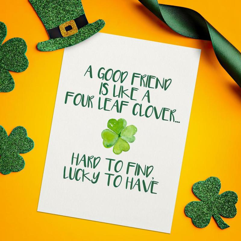Good Friend Four Leaf Clover Card St. Patrick's Day Card Irish Shamrock Card