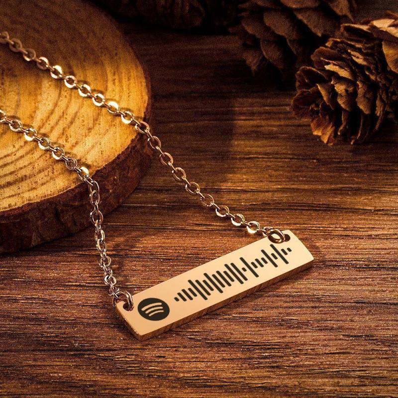 Personalized Bar Necklace Spotify Code Necklace Custom Music Spotify Scan Code Stainless Steel Necklace Gift Rose Gold