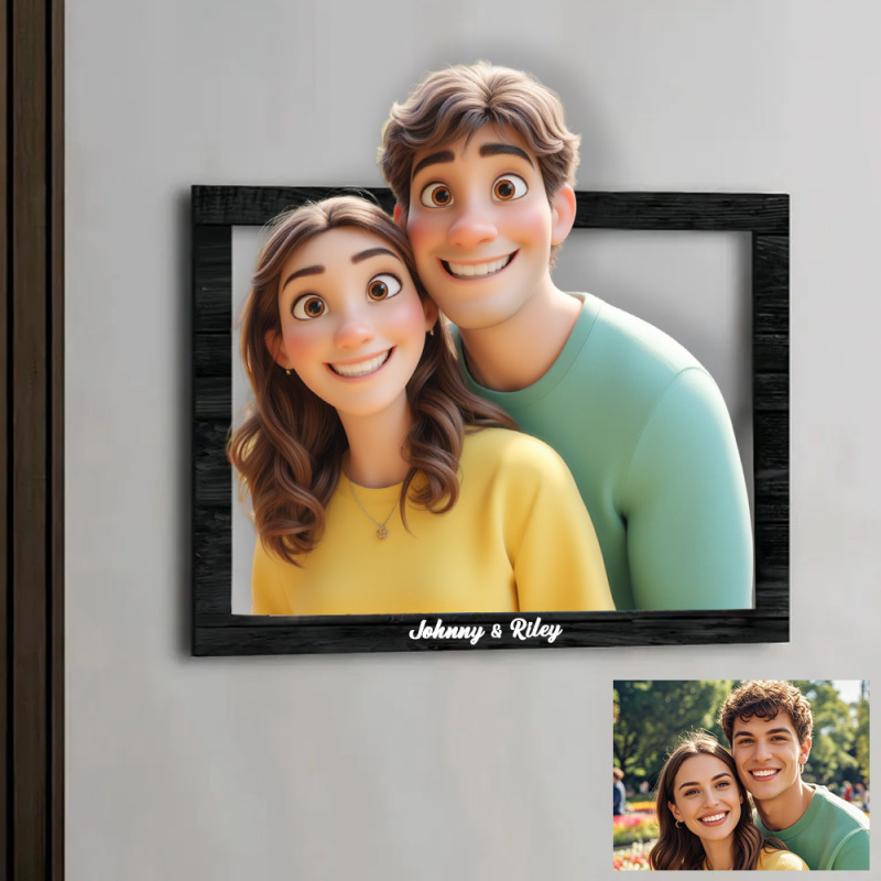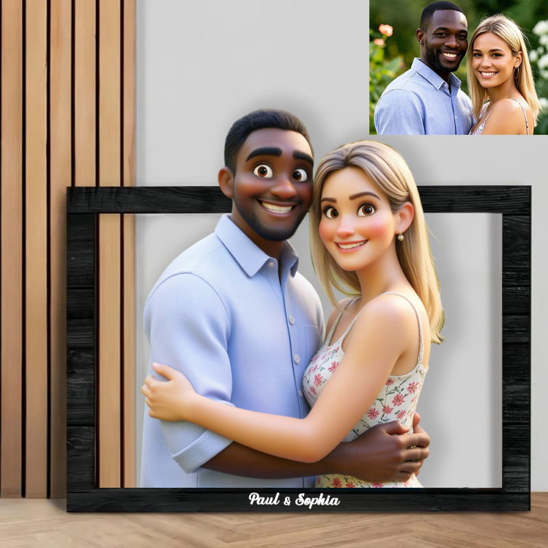 Personalized Cartoon Style 3D Photo Wooden Frame Sign, Custom Family Photo 3D Cartoon Portrait Gift Comic Photo Frame, Wedding Anniversary Christmas Couple Gift