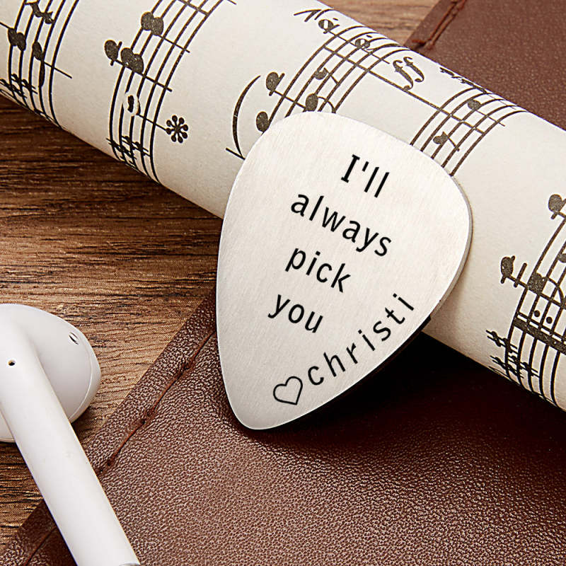 Personalized Engraved Guitar Pick With Heart Hand Stamped Guitar Pick For Boyfriend-I'll Always Pick You