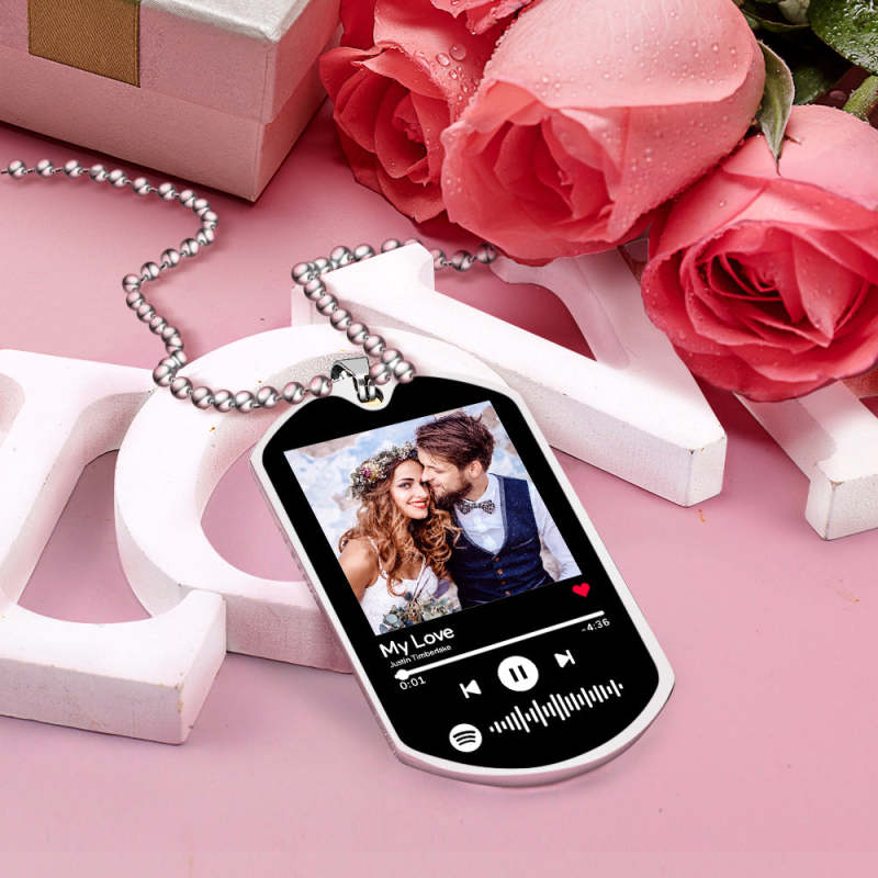 首页 / Personalized Music Spotify Code Stainless Steel Couple Photo Necklace