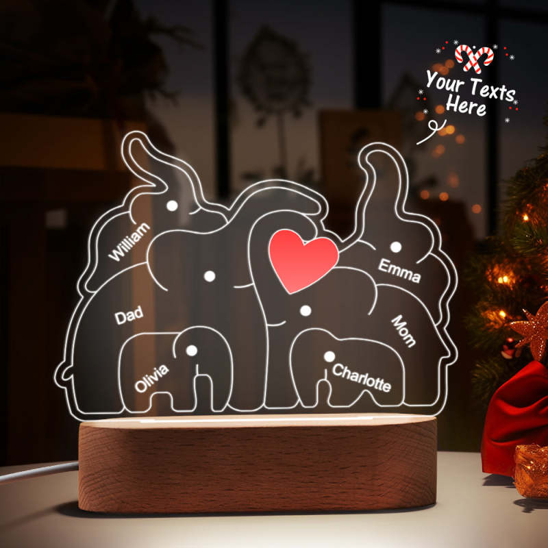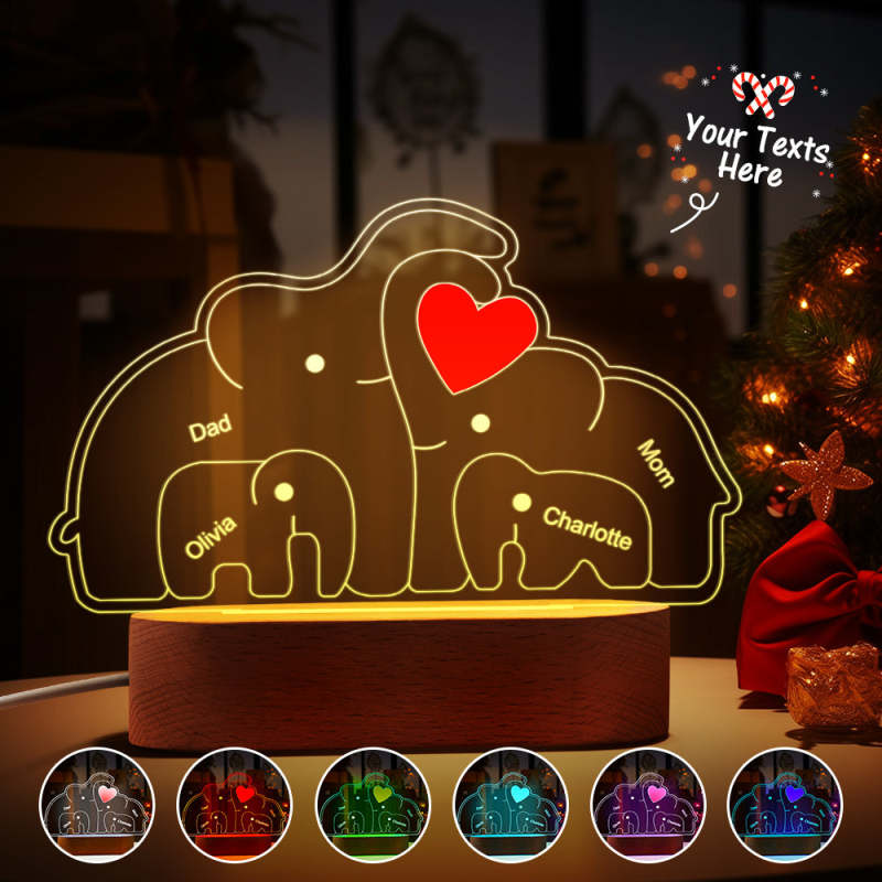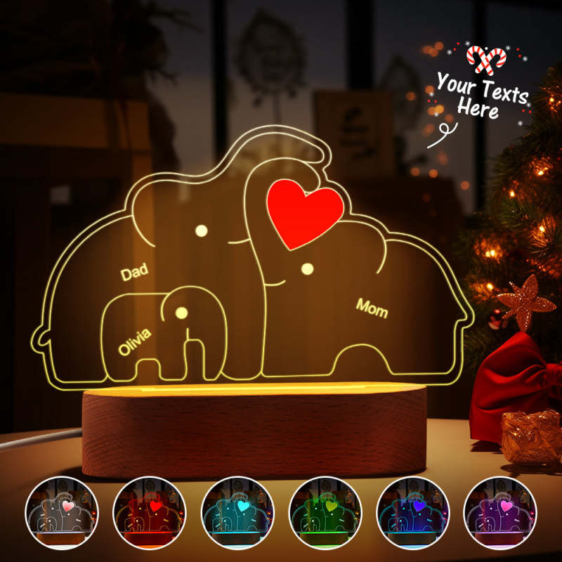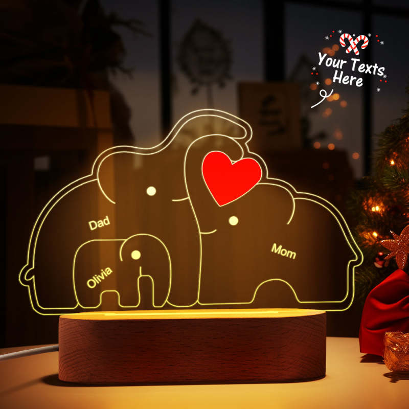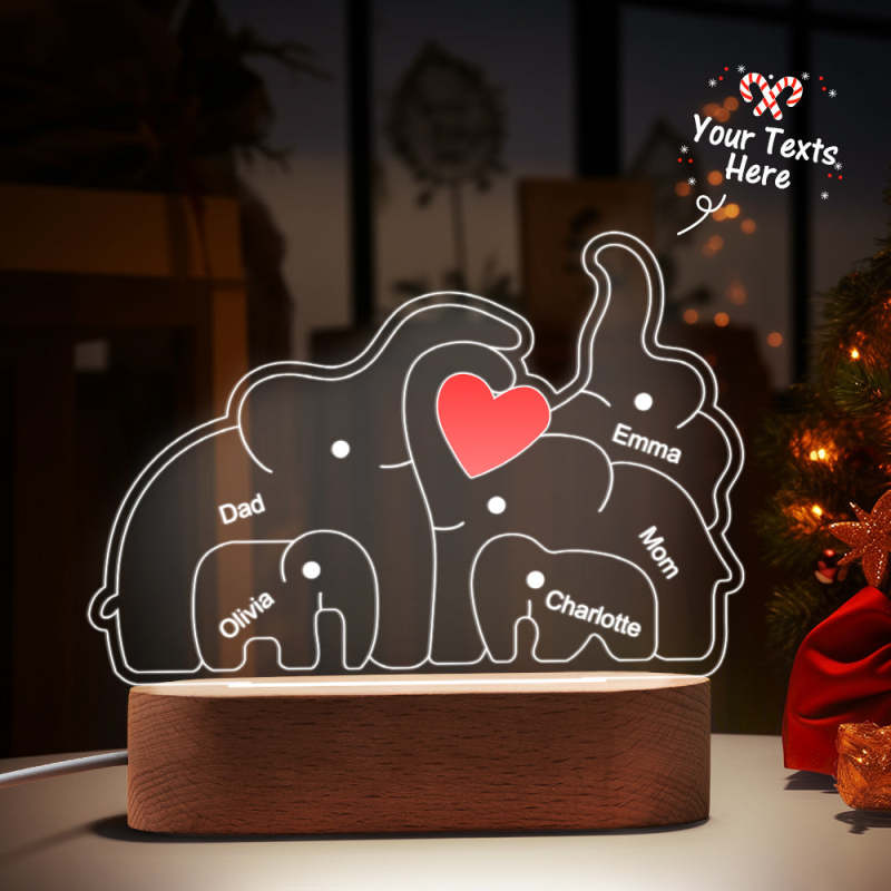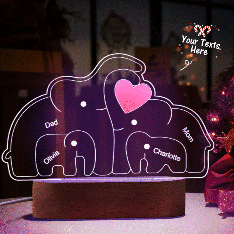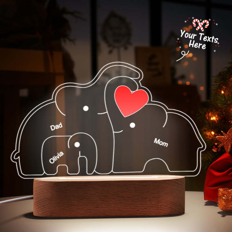 Personalized Names Elephant Family Acrylic Lamp Custom Night Light Best Christmas Gift