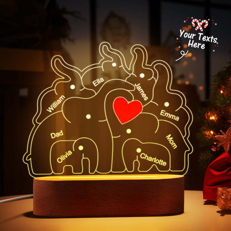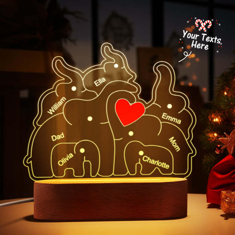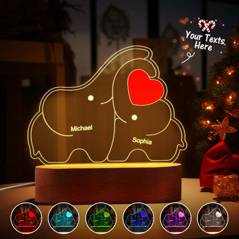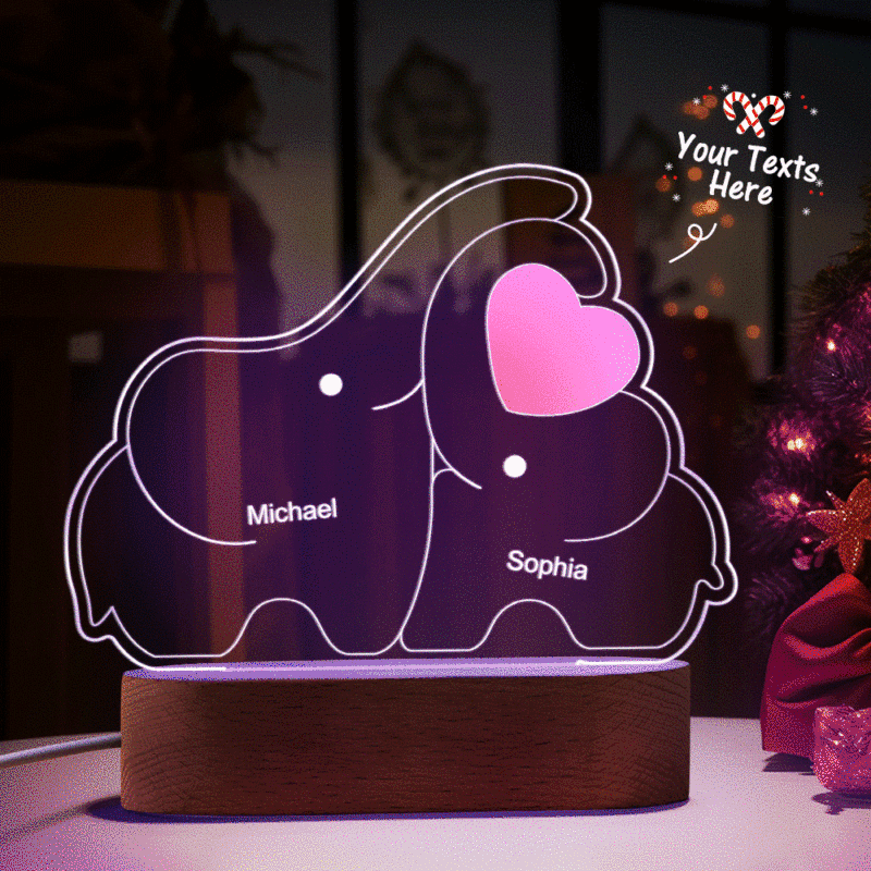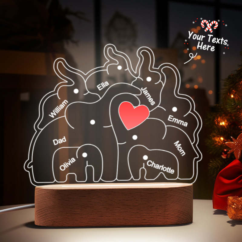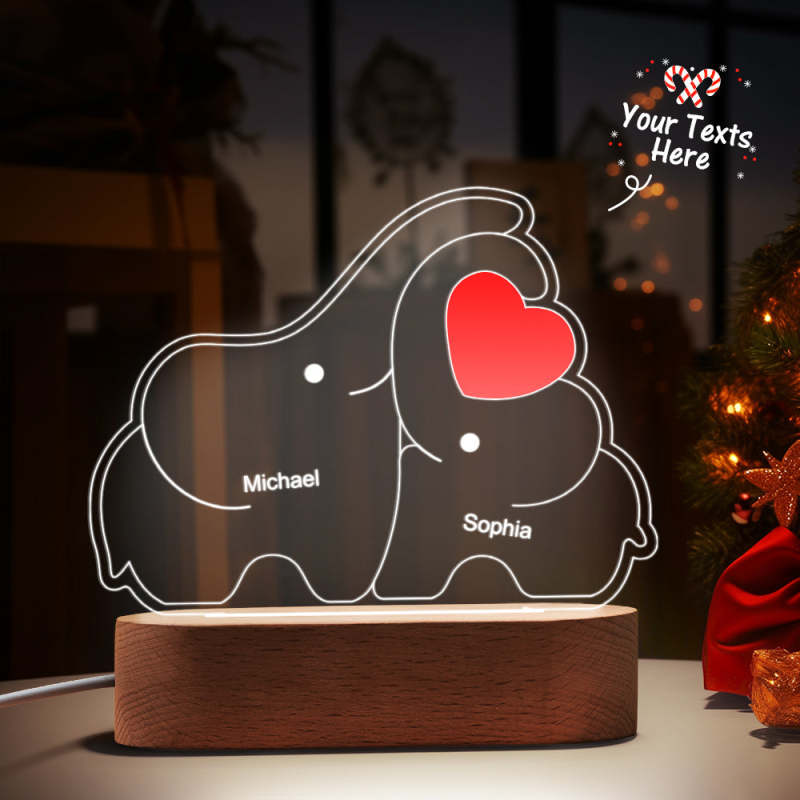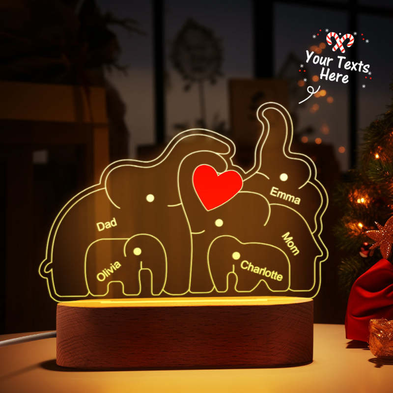 Personalized Names Elephant Family Acrylic Lamp Custom Night Light Best Christmas Gift