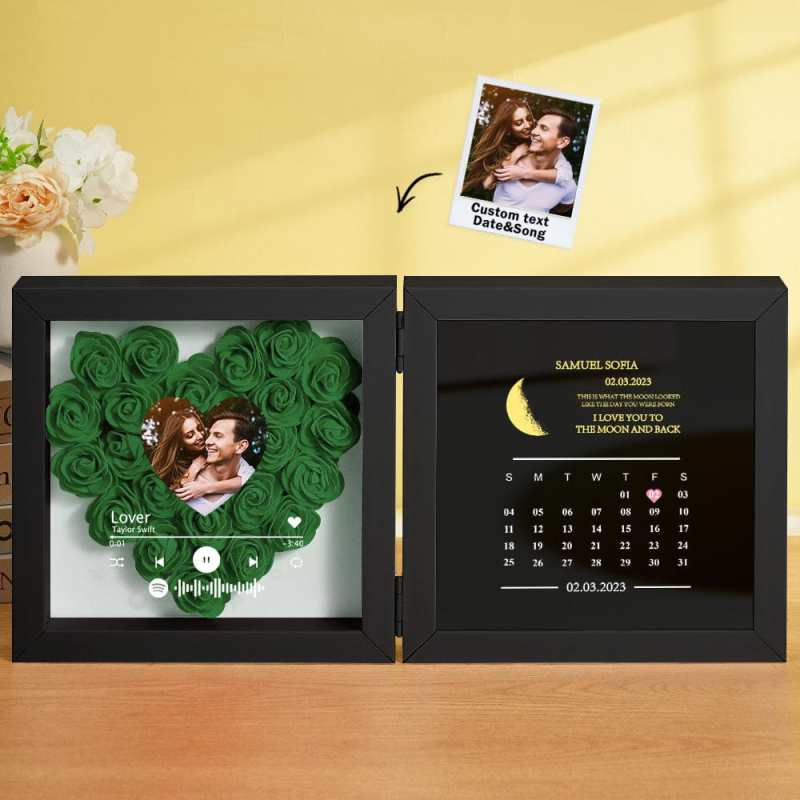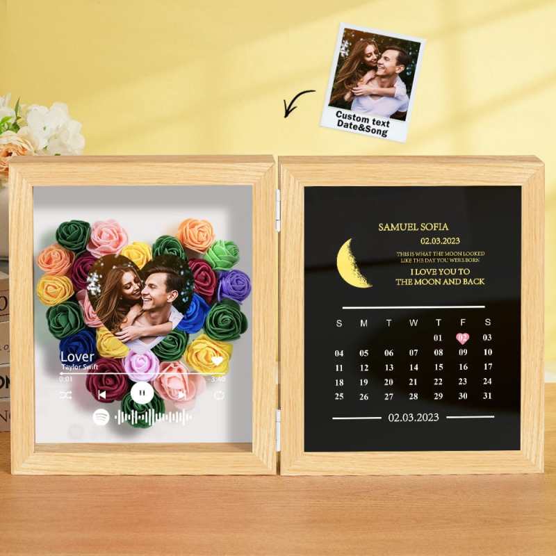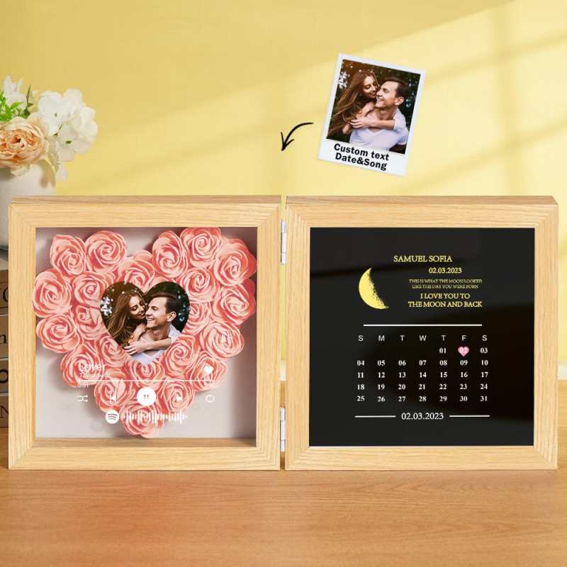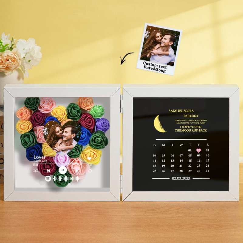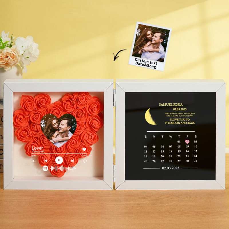 Personalized Photo Rose Flower Box Frame Custom Music Code Moon Phase Calendar Gift for Her