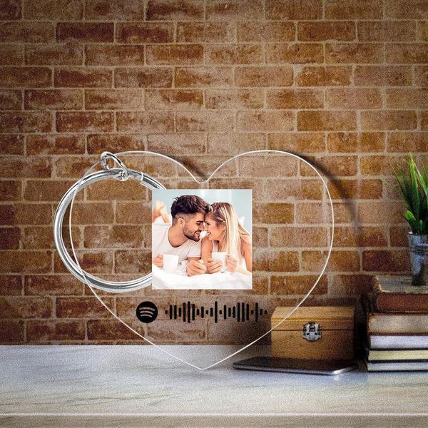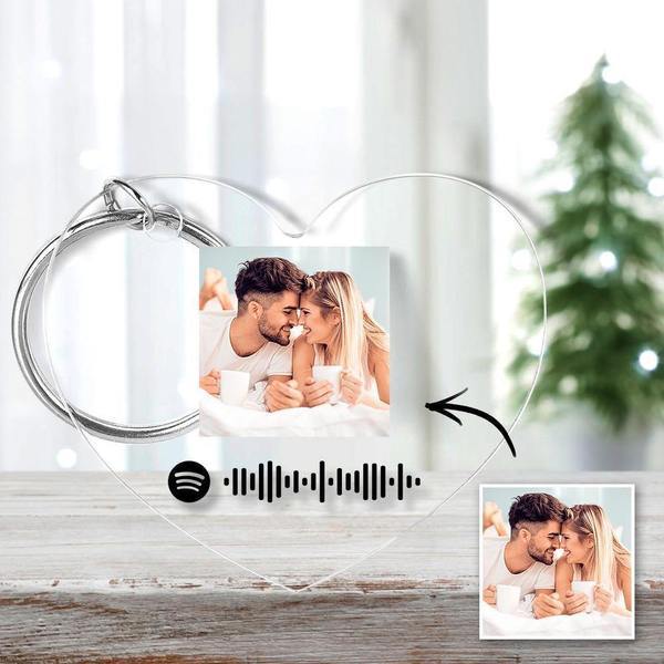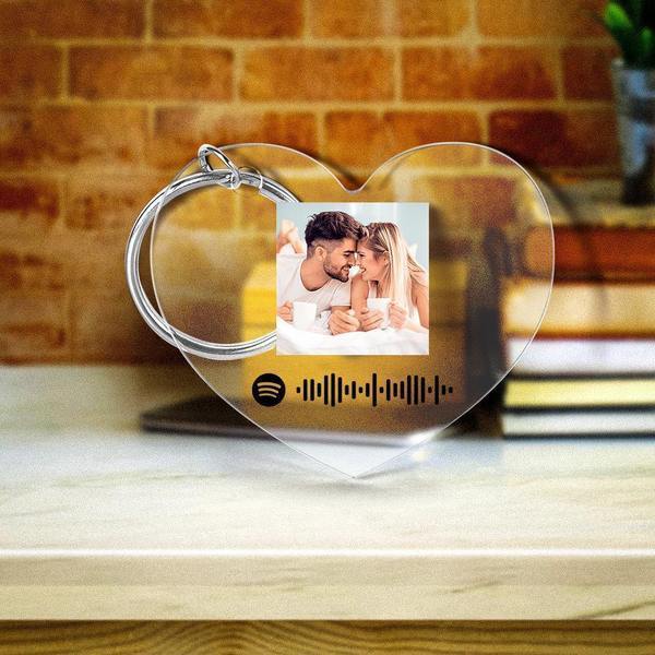 Personalized Scannable Spotify Code Keychain Spotify Favorite Song Photo Engraved Keychain Heart-shaped
